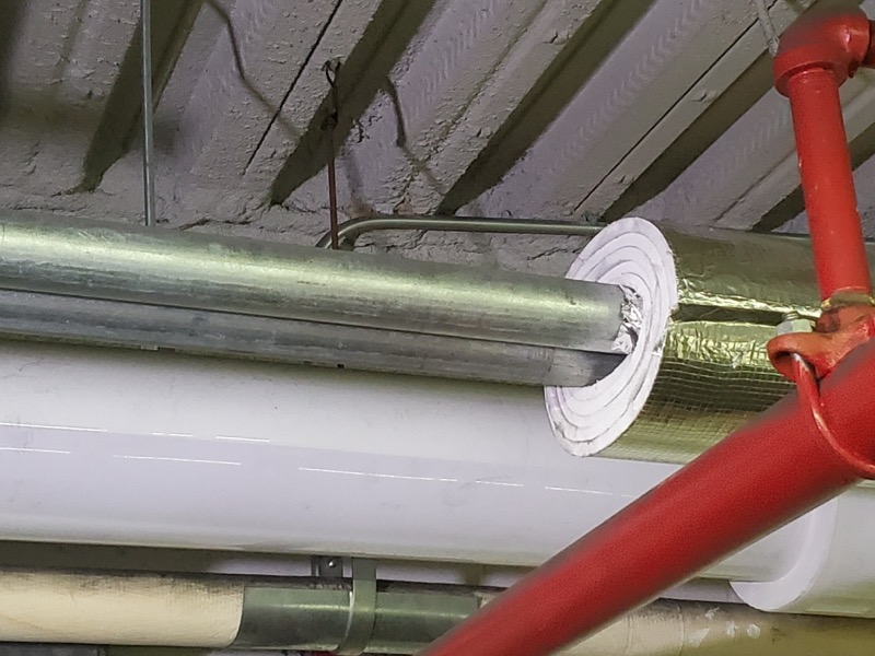 RFS recently implemented an ARCS project at a top-tier medical research facility located in the medical corridor of Manhattan’s Upper East Side. This facility was undergoing an extensive renovation, which triggered the requirement for an FDNY ARC system. The RFS engineering team was able to overcome some of the cable installation challenges on the upper floors with a unique design that allowed for overlapping antenna coverage. This plan negated the need for two-hour fire rating protection of the horizontal cable runs. However, the next problem we faced was the two lower floors. The parking garage was open and exposed without ceilings, leaving us no option to build a soffit to protect the cables. Fortunately, we found a perfect solution to our problem when we brought in Specified Technologies (STI), and their E-Wrap Endothermic Wrap product line. E-Wrap is a protective wrap designed for fire protection of critical circuits and infrastructure such as fire pumps, signaling equipment, elevators, alarms, process control equipment, or emergency responder radio communications systems (ERRCS). When installed around Electrical Metallic Tubing (EMT), conduits, or cable trays, E-Wrap™ releases chemically bound water, which has a cooling effect providing up to 2 hours of circuit integrity ensuring continued operation under fire conditions.